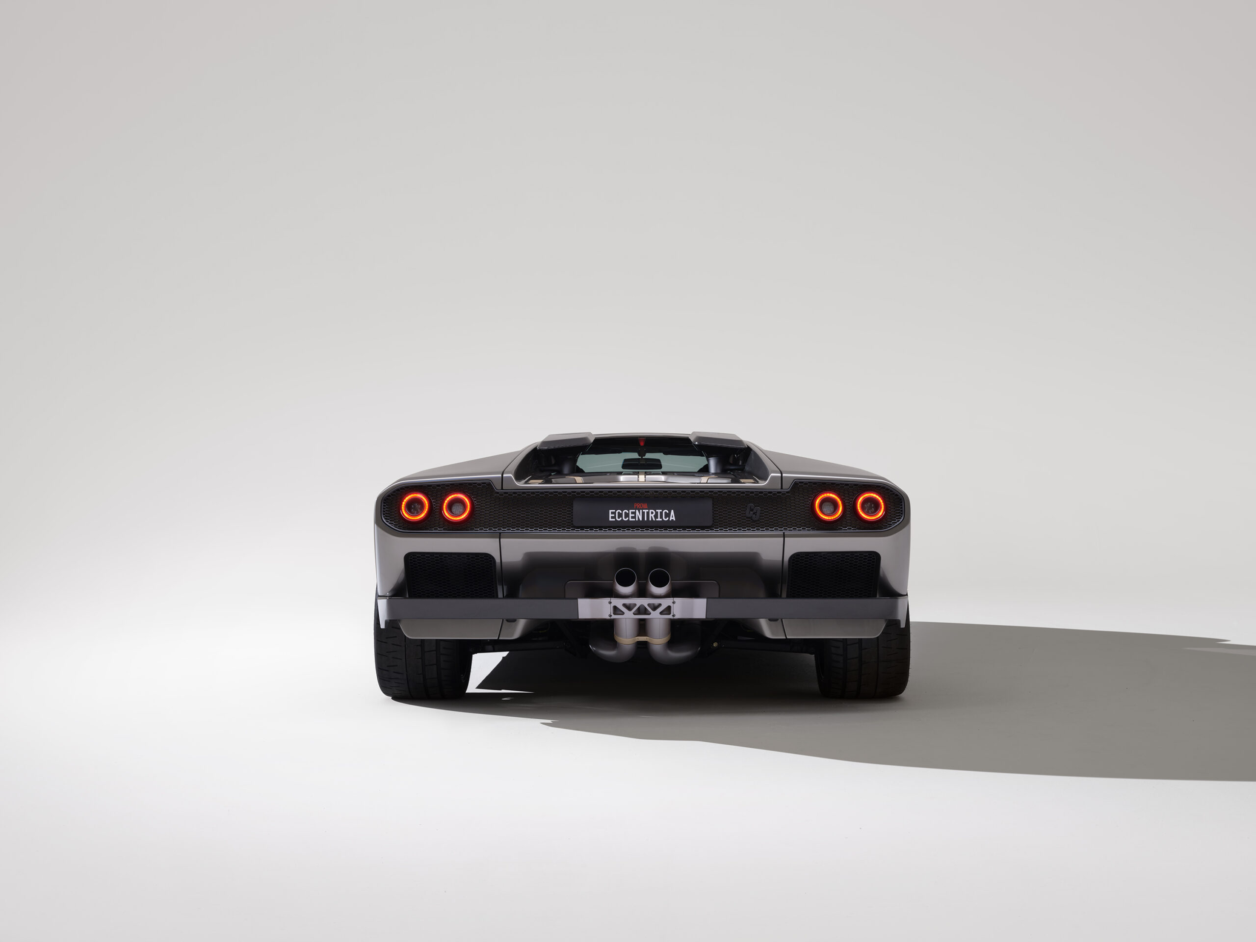 Eccentrica nasce con l’ambizione di creare il restomod più premium e performante possibile, il primo basato su una Lamborghini V12 aspirata. Il progetto parte da una Diablo prima serie, con il solo telaio originale – ovviamente rinforzato – e il leggendario motore 5.7 litri. Tutto il resto è ripensato: sospensioni, elettronica, radiatori, comfort e sicurezza, con dotazioni come traction control, telecamere posteriori, power steering e un sistema lift regolabile. Ogni componente è scelto per garantire prestazioni da vera supercar moderna, mantenendo l’anima brutale e meccanica della vettura originale. Il design richiama ogni versione mai prodotta della Diablo, ma con proporzioni rivisitate e una nuova attenzione ai dettagli, senza mai perdere il rispetto per il lavoro originale di Marcello Gandini.