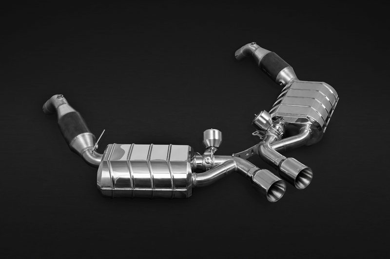 - Impianto di scarico composto dalla coppia di catalizzatori sportivi e dalla coppia di silenziatori posteriori dotati di valvole a comando pneumatico con centralina e telecomando inclusi. Codice prodotto: 02PO07303001 Prezzo Iva italiana inclusa (22%): 5.614,87 Euro